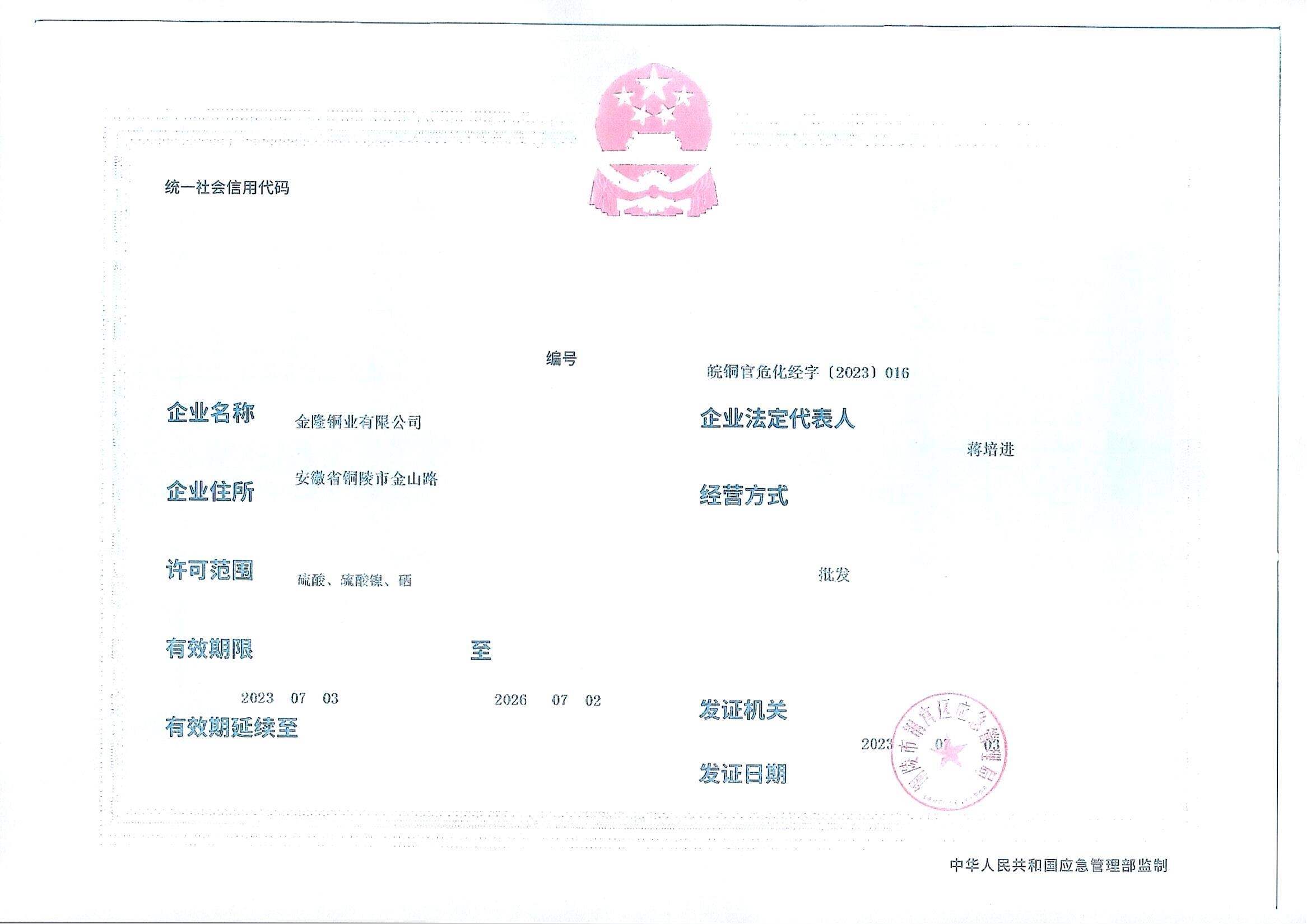 危險(xiǎn)化學(xué)品生產(chǎn)銷售企業(yè)相關(guān)資質(zhì)
